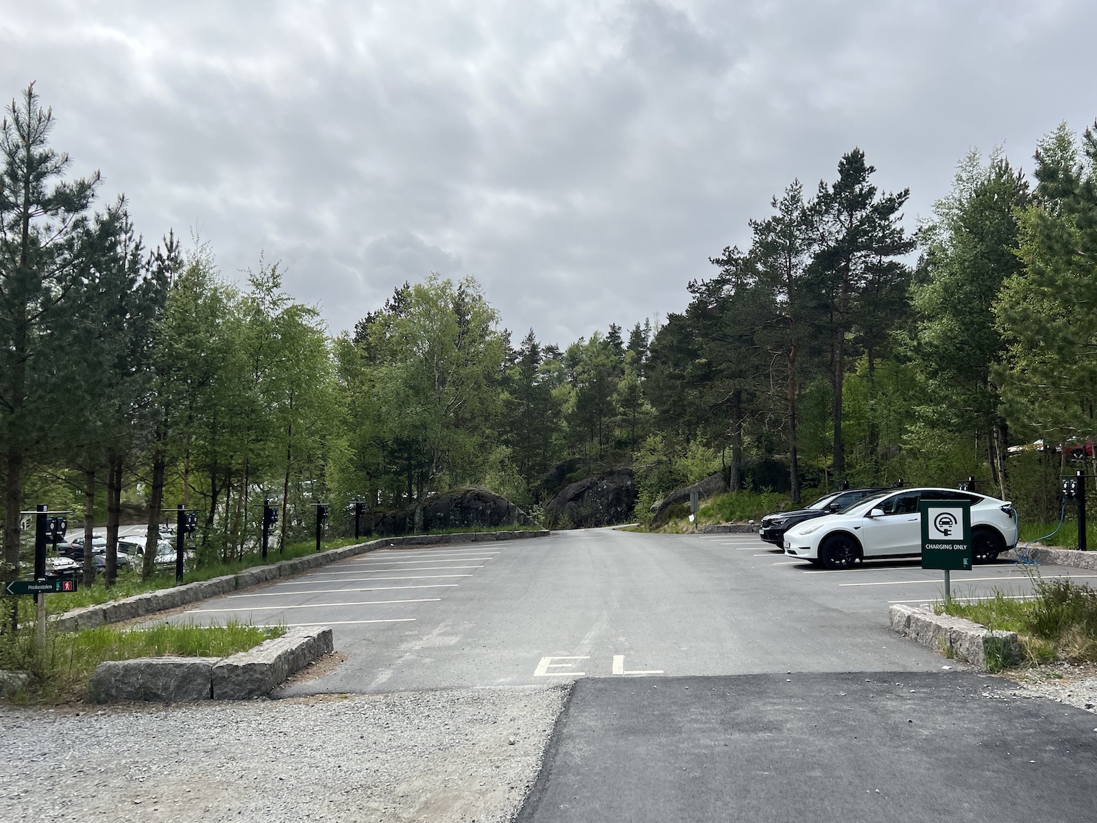 Separater Parkbereich mit Ladestationen am Parkplatz Preikestolen -