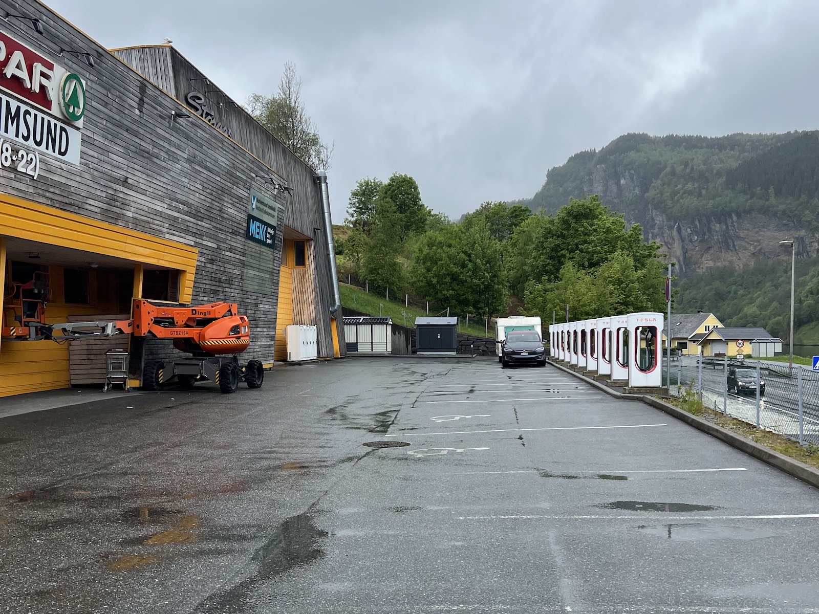 22. Ladestopp am Superchargerstandort Ørskog (Extraplatz für Gespanne!)